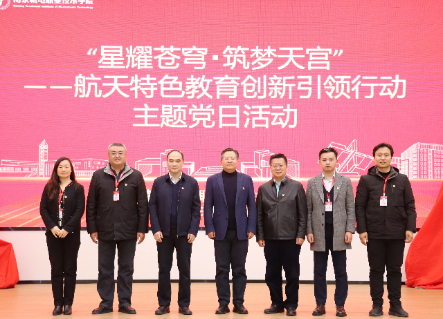 2025年3月6日14:00,南京机电职业技术学院在乐学楼101举办了“星耀苍穹・筑梦天宫”航天特色教育主题党日活动,本次活动旨在响应习近平总书记的号召,激发学生的科学兴趣,弘扬航天精神,培养学生的创新精神和实践能力,推动学校专业建设与航天文化的深度融合。中国航天科技集团有限公司党组副书记、董事方向明,中国人才研究会副会长、航天科技教育联盟秘书长、北京航天探索馆馆长周岫彬,航天科技集团党群工作部三级业务经理张广科,北京神舟航天软件技术股份有限公司市场营销部主管张凇铭,学校党委书记、校长周庆礼,党委委员、副校长刁爱军,党委委员、副校长孔德丽,党委委员、纪委书记姜振宇,党委委员夏玲玲、党委委员高水冕以及全体党员教师和学生代表参加了本次活动。