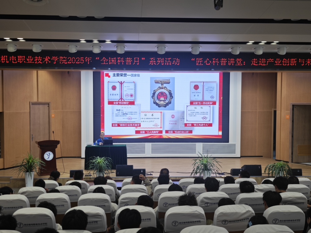 2025年10月14日下午,机械工程系邀请全国劳动模范、南钢集团首席技师张红军走进校园,为机械工程系机械制造及自动化、智能制造装备技术大一新生带来一场主题为“匠心铸梦,百炼成钢”的主题报告会。此次活动是南京机电职业技术学院2025年“全国科普月”系列活动之匠心科普讲堂:“走进产业创新与未来科技”主题活动之一。本次活动在乐学楼102举行,校关心下一代工作委员会常务副主任郭朝辉、机械工程系主任毛奇、机械工程系党支部书记胡枫、校企及科研合作处处长李木香、学工处处长张宝中出席此次活动。