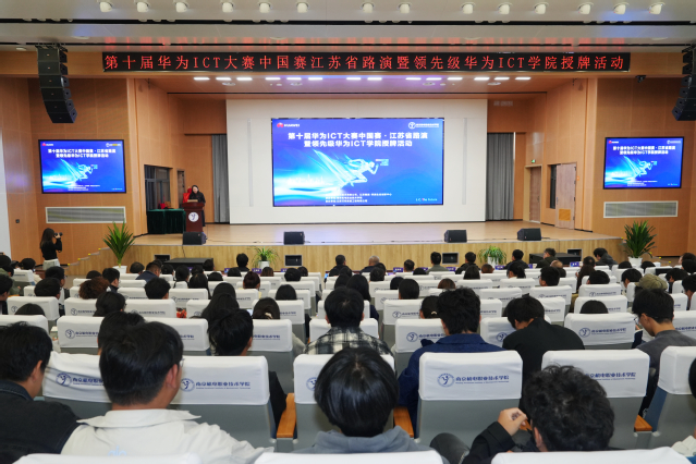 2025年10月21日下午,第十届华为ICT大赛中国赛·江苏省路演暨领先级华为ICT学院授牌活动在学校乐学楼101报告厅举行。领先级华为ICT学院的授牌,不仅是学校深化产教融合、推进ICT领域人才培养的重要里程碑,也标志着学校与华为及相关企业的合作迈入更高质量发展阶段。