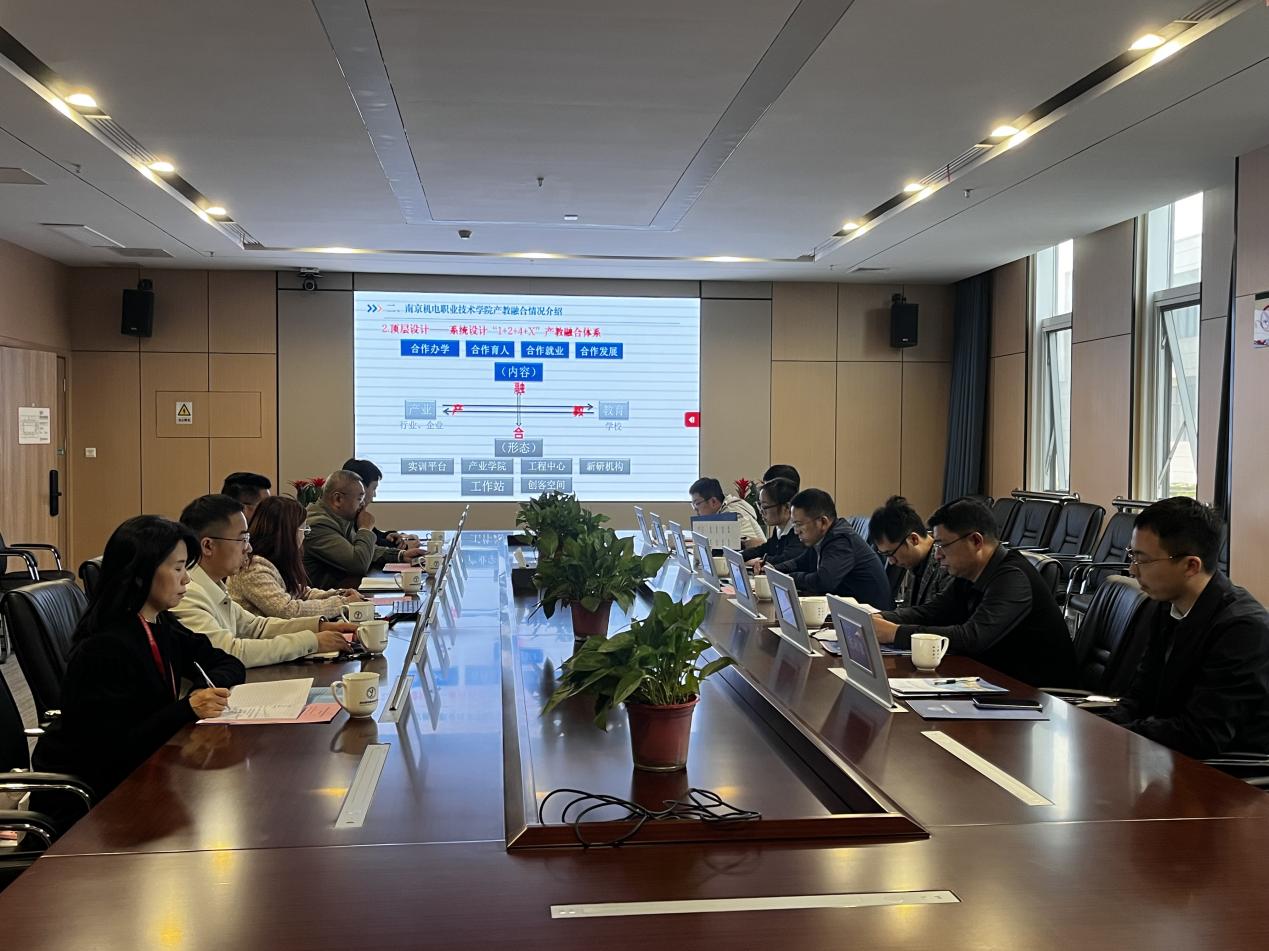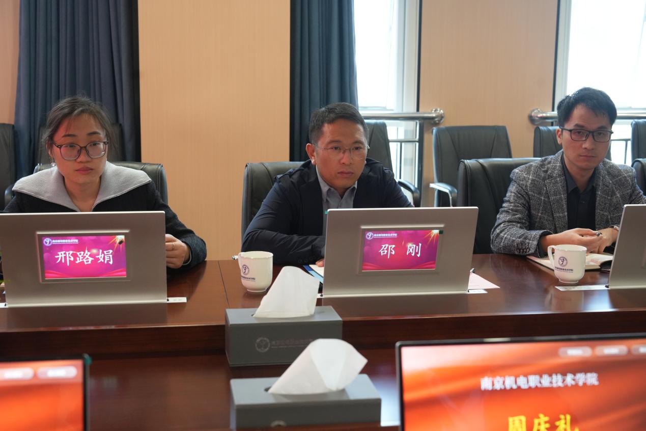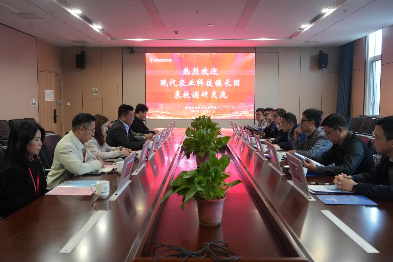 2025 年 10 月 27 日下午,以“校地协同・共促产教发展”为主题的现代农业科技镇长团调研交流活动在南京机电职业技术学院育德楼 305 会议室顺利举行。高淳区人民政府副区长、科技镇长团团长邵刚,江苏省农业科学院研究员史高玲,南京农业大学副教授邢路娟,天津大学副教授黄俊,南京工程学院副教授黄亚洲,江南大学食品学院副研究员陈秋铭,南京理工大学副教授许赛,学校党委书记、校长周庆礼,党委委员、副校长刁爱军,科研及校企合作处处长李木香,信息工程系主任王国珍等领导出席活动,相关专业教师参与交流,共同擘画校地深度合作,产教深度融合的新蓝图。
