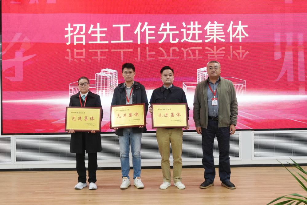 党委委员、副校长刁爱军为“招生先进集体”和“就业工作先进集体”颁奖。