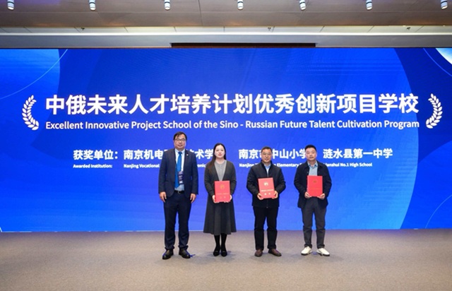 会上,我校被授予“中俄未来人才培养计划优秀创新项目学校”的荣誉称号,中国教育国际交流协会民办教育分会副理事长、中国教育国际交流研修学院副院长唐唯阳先生为我校颁发证书。