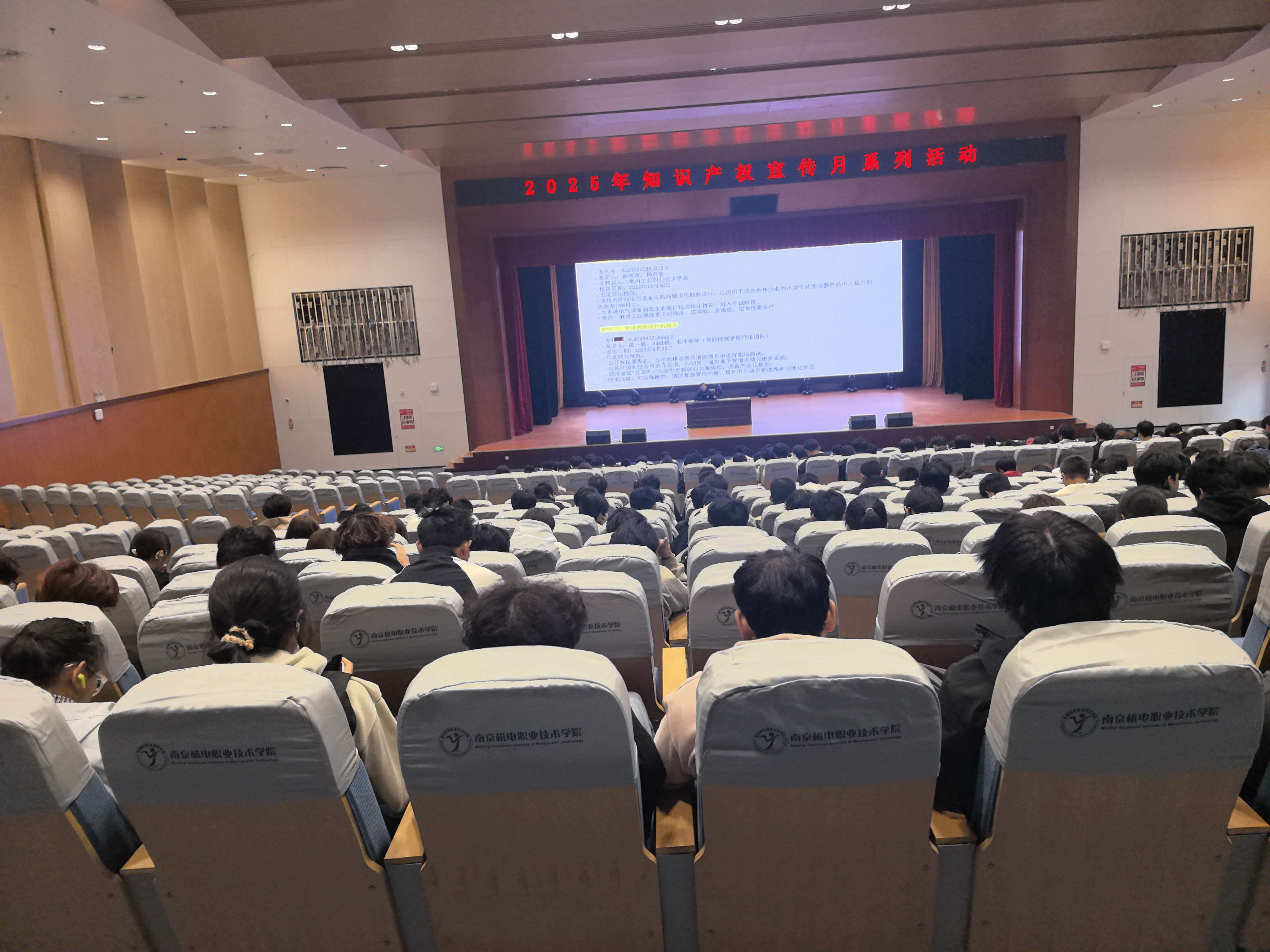 20251111日下午,作为“2025年知识产权宣传月”系列活动的重要组成部分,两场面向大一新生的知识产权专题讲座在学校顺利举行。活动分别在青春剧场和乐学楼102同步开展,吸引了来自机械工程系、电子工程系、自动化工程系、人文社科系、信息工程系800大一新生参与。