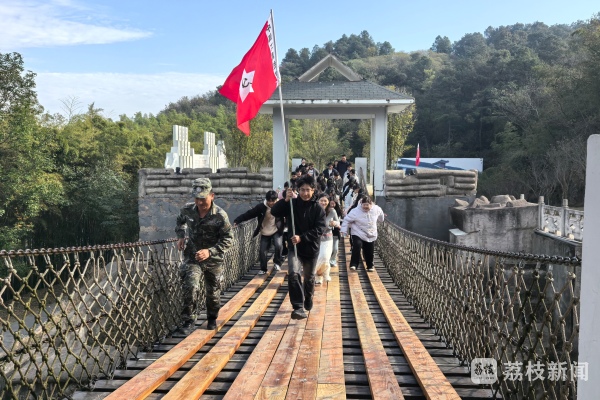在“重走长征路”的沉浸式体验环节,同学们沿着模拟路线,亲身体验了长征途中的著名战役与艰难险阻。在模拟的“赤水河”畔,大家体会了“四渡赤水”中迂回机动的战术智慧;行走在摇曳的“铁索桥”上,下方“波涛”汹涌,亲身感受了飞夺泸定桥的惊心动魄;在攀爬陡峭的“雪山”路段时,相互扶持的身影,更是对革命先辈钢铁意志的无声致敬。前进途中,两校同学互帮互助,结伴而行。这场身体力行的实践,不仅是一次深刻的理想信念教育,更让同学们在并肩前行中结下了深厚友谊,为本次共建活动写下了生动注脚。