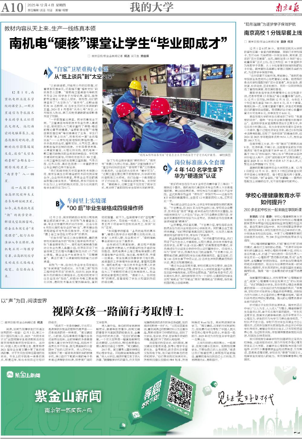 近日,《南京日报》A10“我的大学”版以大篇幅报道我校在产教融合领域的显著成果,这不仅是对学校深化产教协同、培养高素质应用型人才工作的高度认可,更是全体南机电人并肩奋斗的珍贵见证。全文如下: