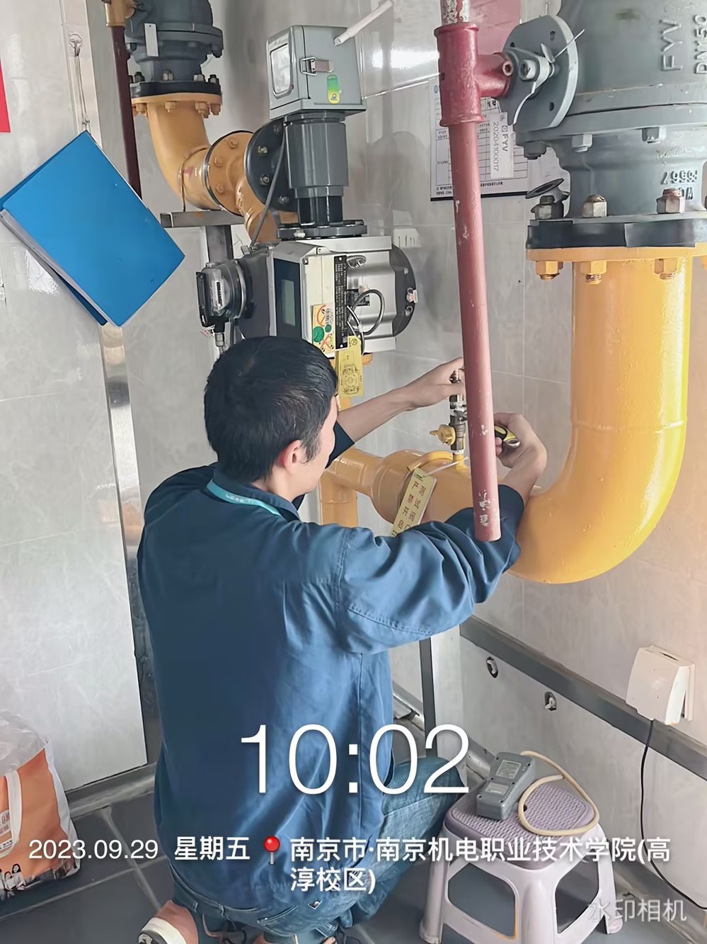 为贯彻落实《省教育厅办公室召开全省学校燃气安全专项整治工作会议通知》的精神,确保中秋、国庆佳节期间校园安定和谐,在校师生人身财产安全,南京港华能源科技有限公司于2023年9月29日,对学院食堂天然气管道接口、连接件、阀门及燃气报警器、燃气调压柜、计量表具等设施设备进行燃气泄漏及使用情况安全检查,对长时间使用的炉具软管、阀门安全距离提出相关意见,检查中未发现燃气泄漏现象。