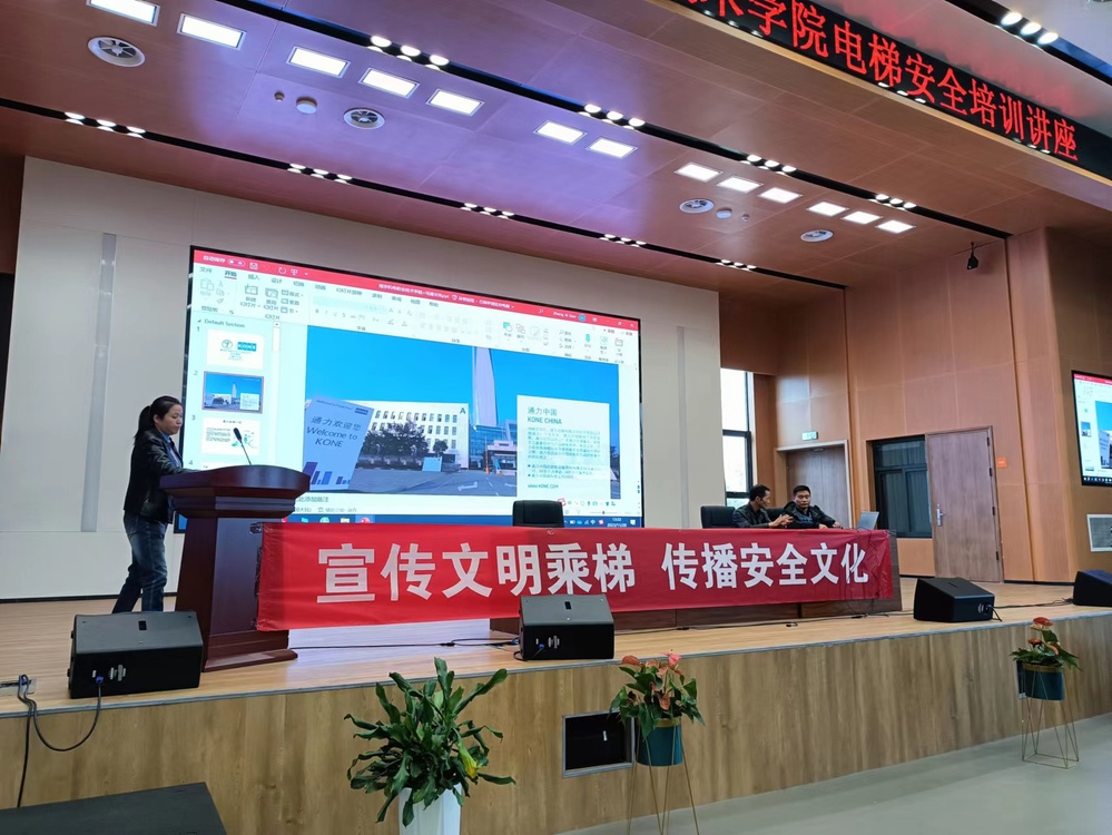 首先在报告厅进行理论宣讲,通过讲解电梯正确安全的使用方法,结合实际发生的一些安全事故进行分析,加强师生对于电梯安全的正确认知与应变能力。
