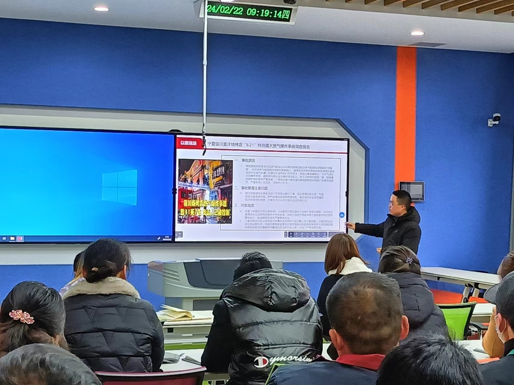 在安全宣传视频介绍的一幕幕真实案例面前,大家更加深刻体会到安全用电的重要性。殷总向大家详细介绍导致电气线路起火的因素、日常安全用电注意事项,分析出现用电安全事故的主要原因以及有关触电急救的相关知识和急救措施。