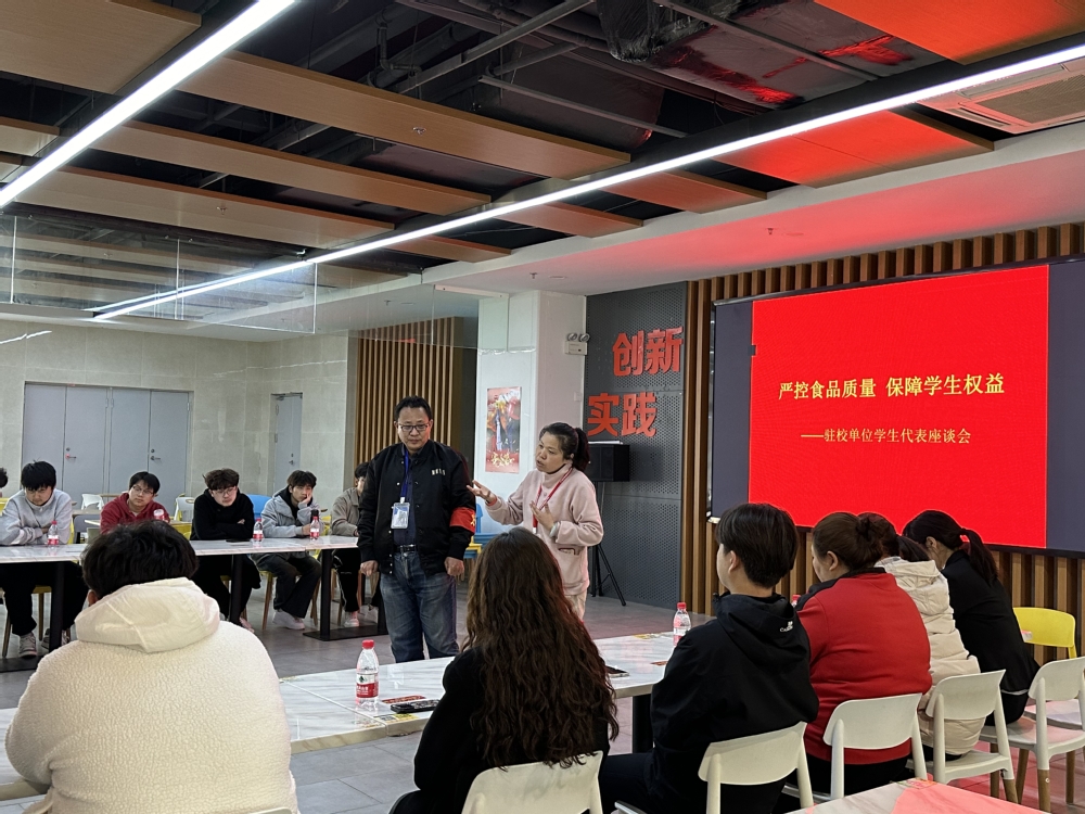 会上学生代表围绕关注度较高的饭菜价格、环境卫生、住宿环境、浴室服务等方面踊跃发言,并对如何提升学校后勤服务保障水平提出了宝贵的意见和建议。后勤处老师及各经营单位负责人对提出的问题进行了耐心细致的解答,对暂时无法解决的问题做出详细解释与说明。