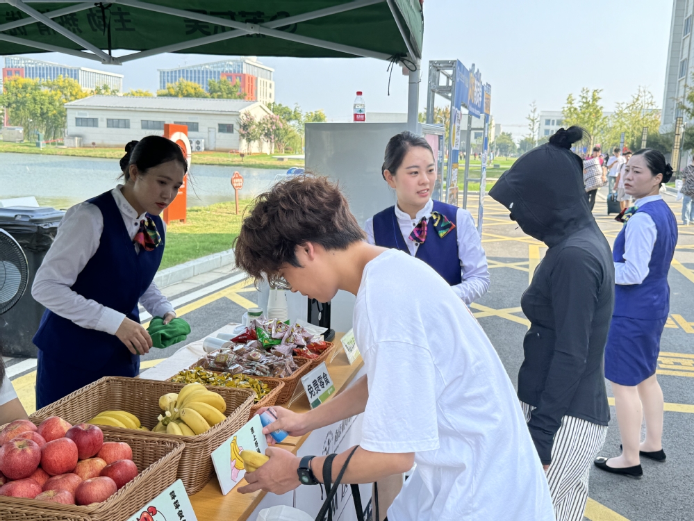 9月8日清晨,物业员工在宿舍区主干道布置好迎新帐篷,为新生和家长们提供了饮用水、零食水果和纸巾,发放小扇子,为迎新活动保驾护航。同时还为新入学的机电学子准备了宿舍生活小指南,为新生和家长指路答疑,帮助新同学快速熟悉校园。