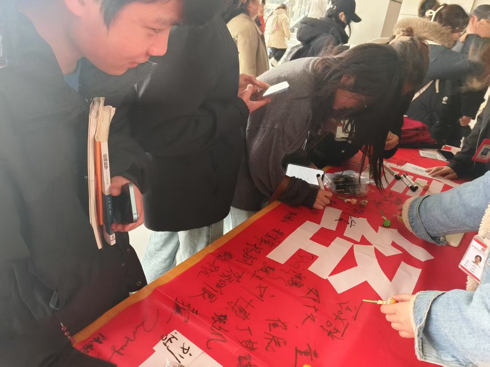 签名活动中,学生们纷纷在横幅上郑重签名,表达对维护消费权益的支持与承诺。象征着大家将成为校园和社会中诚信消费的践行者和监督者。