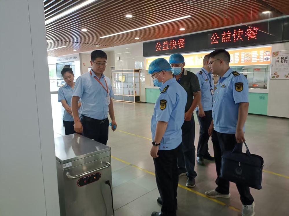 为确保秋季开学师生用餐安全,保障校园生活秩序。9月2日下午,高淳区市场监督管理局食品监管科科长孔春才与开发区分局局长凌晓东带队,对学校食堂食品安全进行了专项检查。后勤处副处长孙永玲、干事周涛及食堂现场负责人陪同检查。