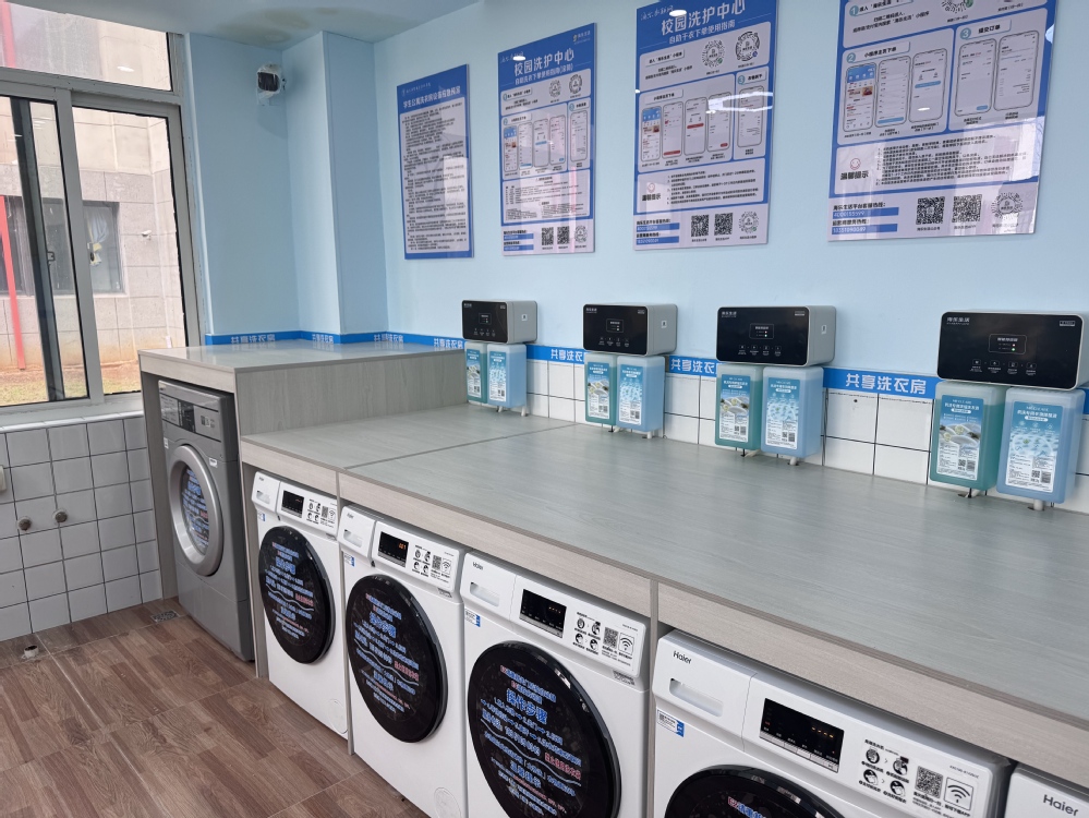 洗衣房是学生日常高频使用的场所。后勤安保处更换了节能高效的新型洗衣、烘干设备,优化空间布局并增设便民设施,满足师生多样化的洗衣需求,让洗衣体验更舒适、更高效。
