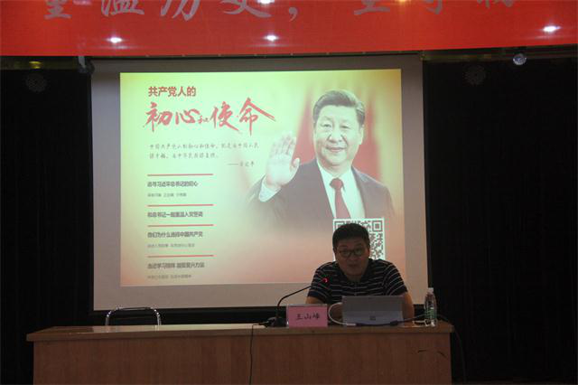 王山峰以“重温历史,坚守初心,在新时代完成使命担当”为主题,作了一场具有政治高度、理论深度、实践广度的精彩报告。报告以习近平新时代中国特色社会主义思想为指导,从“历史与初心,主题教育的由来”“初心和担当,知行合一”“新形势下如何担当”三个层面,运用翔实的资料和生动的案例,深刻阐述了中国共产党人初心使命的丰富内涵和实践要求。