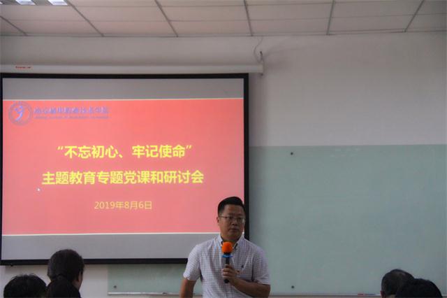 2019年8月6日上午,我院开展“不忘初心 牢记使命”主题教育专题党课活动,学院党委书记、院长周庆礼作了题为《放飞凌云志,重上井冈山,熔铸守初心,建设新机电》的专题报告,学院全体中层及以上领导干部和各专业负责人参加了学习。