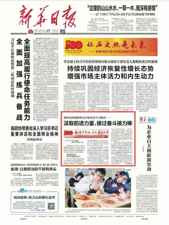 3月27日《新华日报》头版中,刊发了人文社科系团总支学生副书记、会计191班团支部书记范灿同学作为参加教育部举办的“党史云答题”活动代表接受《新华日报》记者采访。