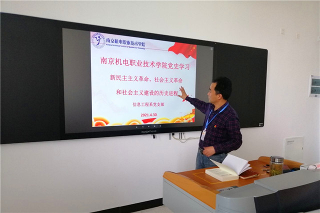为了贯彻落实《南京机电职业技术学院关于开展党史学习教育的通知》精神,根据信息工程系党支部的学习计划和安排,信息工程系党支部于4月30日下午,在博学楼306室召开了党史学习教育专题扩大会。本次学习由支部宣传委员卞志勇同志主讲,系部主任王玮同志、支部书记胡枫同志、副主任刘娴同志率全体党员及教职员工参加会议。