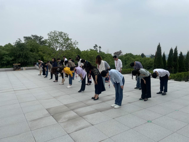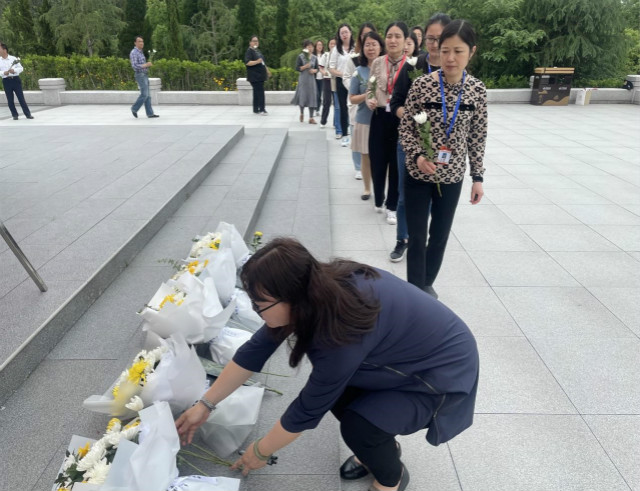 当天下午,该系全体党员教师,排着整齐的队伍,迈着沉重的步伐,怀着崇敬的心情,肃立在刻着“革命烈士永垂不朽”的纪念碑前,机械工程系主任佟静同志和徐磊同志将敬献的花篮摆放在纪念碑前,仔细整理好缎带之后,带领全体党员向革命先烈鞠躬致敬,低头默哀,重温入党誓词,向革命烈士表达无限敬意与哀思。