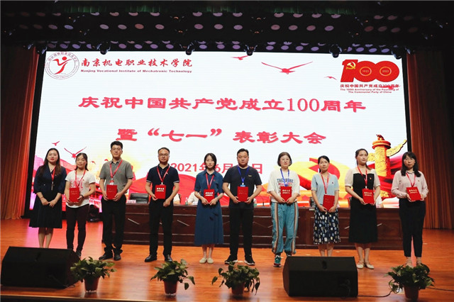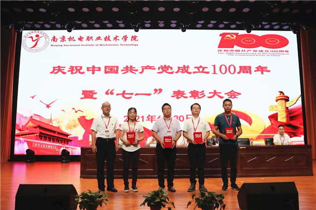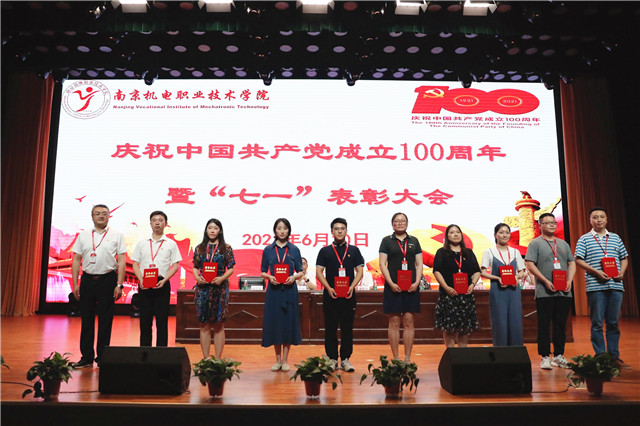 学校党委副书记、纪委书记、副院长陈赵通报了获得2020年度机电集团“优秀党员”、“优秀党务工作者”、“先进基层党组织”等荣誉的人员及单位。党委委员、副院长郭朝辉宣读《2020-2021学年先进基层党组织、优秀共产党员、优秀党务工作者》和《中共南京机电职业技术学院委员会“十大育人示范岗”》的表彰决定。党委领导为“十大育人示范岗”、“优秀党员”、“优秀党务工作者”、“优秀党支部书记”、“先进基层党组织”颁奖。