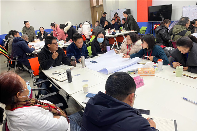 此次活动由学校党委委员、副院长孔德丽主持,他以充满趣味的方式将参会人员分成“理念新”、“机制新”、“面貌新”、“成效新”四队,并挑选出队长带领队员共同完成取队名、绘队标、定口号等团建任务。紧接着,孔德丽深入浅出地阐释了“四新”的深刻内涵,提出各队成员需围绕各自的“新”拟定“新”目标、任务或期望,并对照预期将学校当前所存在的问题写在下发的便利贴上。在此基础上,各队根据问题分类梳理情况,聚焦出主要问题后再进行充分讨论,用鱼骨图或思维导图等形式将解决措施呈现出来。
