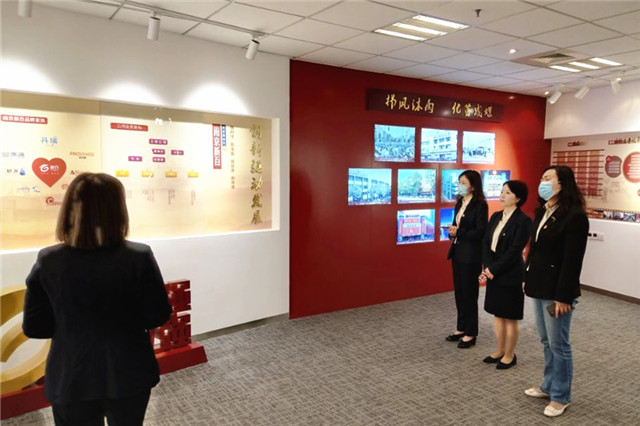 新百公司王莉经理的陪同下,吴伟萍和学校13名实习生在讲解员的带领下,参观南京中心23楼的新街口CBD党群服务中心和新百荣誉陈列室,观看了新百党建宣传片。学习结束后,一行人与新百公司领导学生培养、企业发展、党建结对等事宜进行了座谈交流。