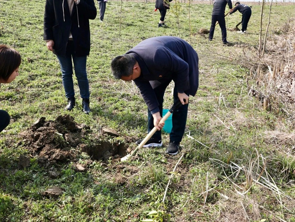 党员和团学骨干一起走进水慢城,以党小组为单位领取植树工具。在植树现场,师生干劲十足,手持锄头、铁锹等工具,挥锄挖坑、扶正树苗、填土压实,大家分工有序,配合默契,将一棵棵承载着希望的树苗栽种进土壤。湖边、道路旁很快就竖起一道道生机勃勃的风景线。这些新栽的树苗,将在水慢城这片土地上扎根,成长为未来的树林,提供清新的空气和宜人的生活环境。