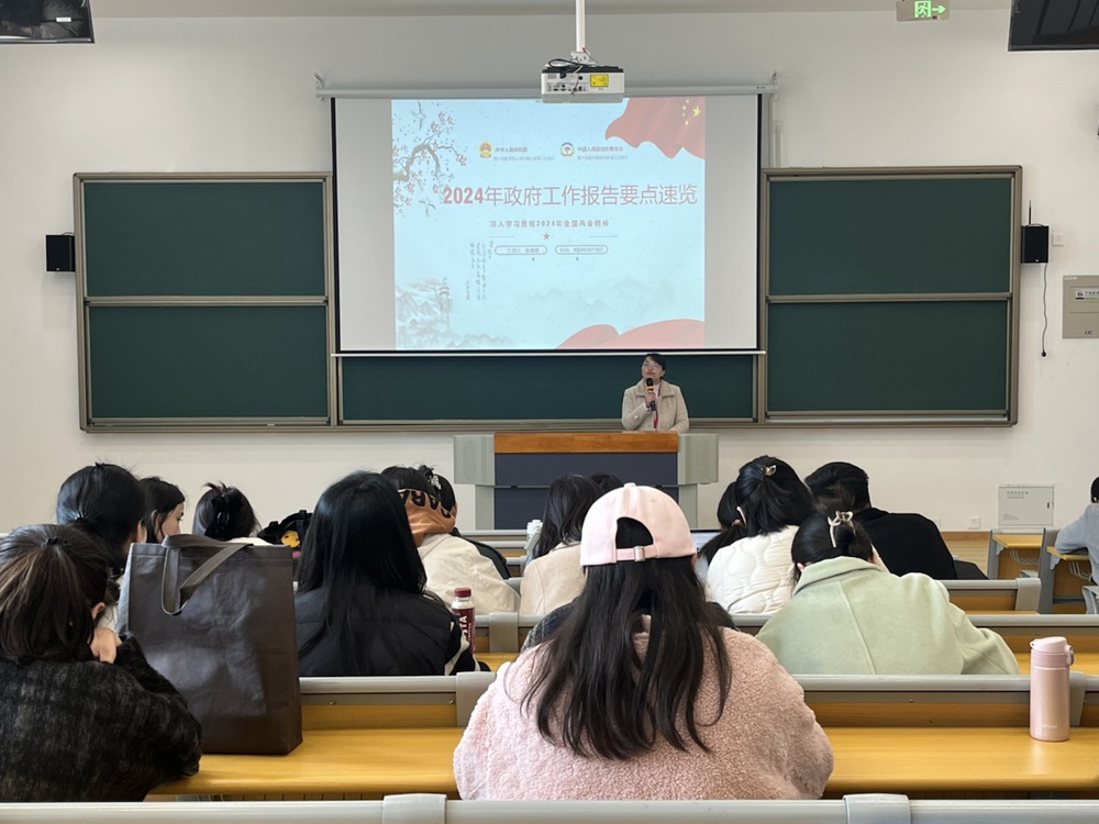 2024年3月5日上午9时,第十四届全国人民代表大会第二次会议在人民大会堂举行开幕会。国务院总理李强代表国务院向十四届全国人大二次会议作《政府工作报告》。为了进一步认真学习《政府工作报告》,领会全国两会精神,3月12日下午,人文社科系党支部在勤学楼105组织开展《政府工作报告》专题学习。本次学习由思政中心陈璐璐老师主讲,人文社科系全体教职工参加。