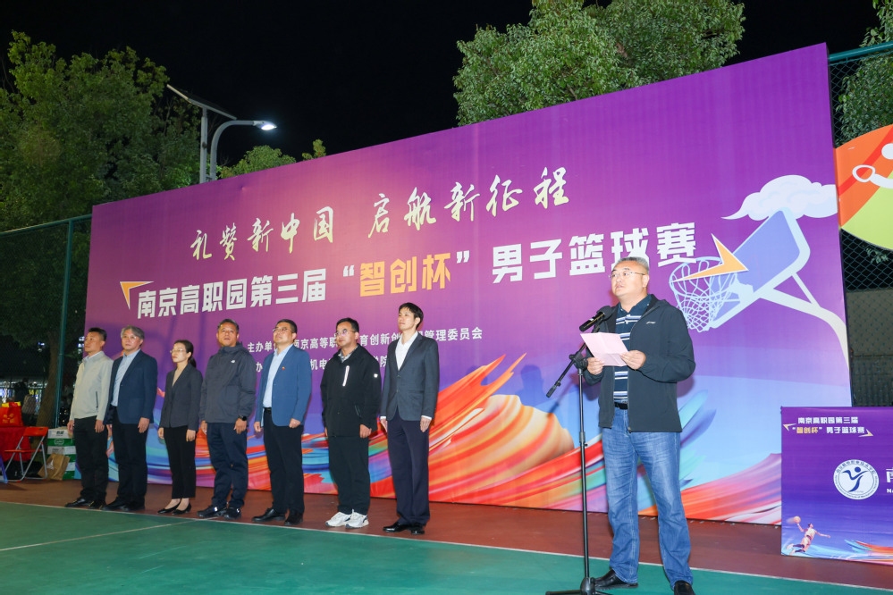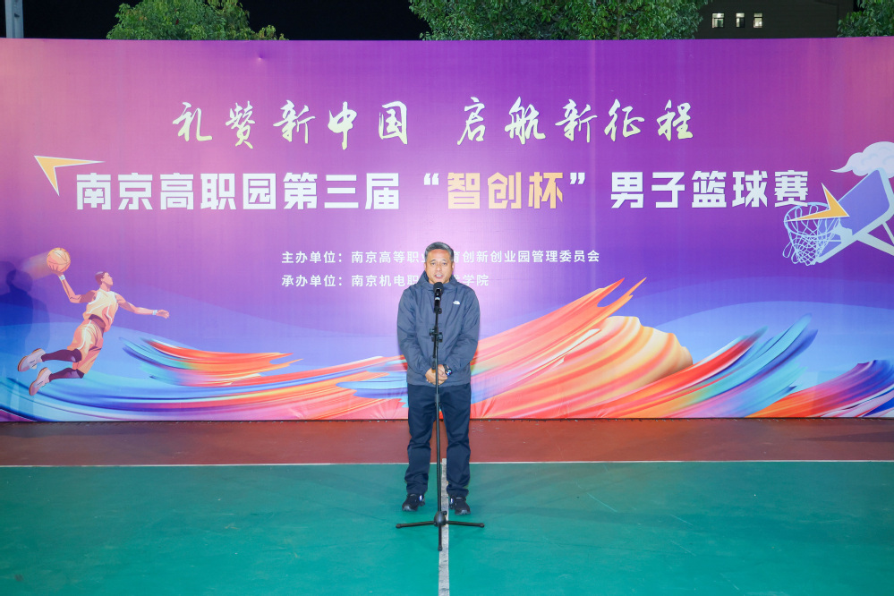 为庆祝新中国成立75周年,深入学习贯彻党的二十届三中全会精神,推动文化事业发展,强化校企地融合,加强园区“智创”党建联盟成员单位交流。10月23日,由南京高等职业教育创新创业园管理委员会主办、南京机电职业技术学院承办的2024年南京高职园第三届“智创杯”男子篮球赛在我校顺利开幕。开幕式由党委委员、党委工作部副部长高水冕主持。