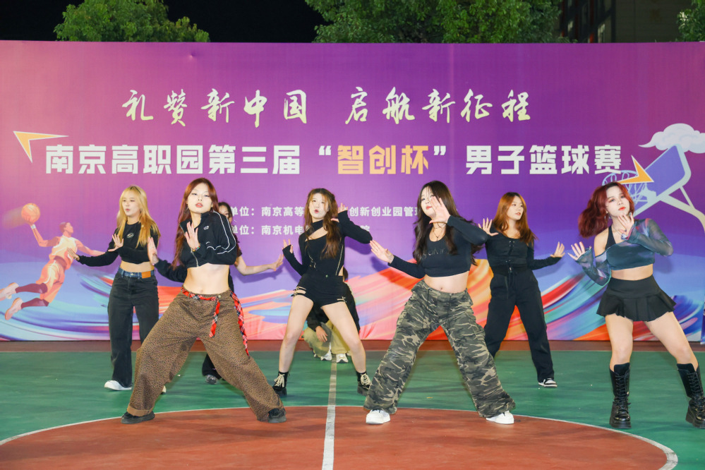 南京航空航天大学金城学院、南京理工大学紫金学院、南京机电职业技术学院表演的开场舞、啦啦操、街舞,以动感的节奏和矫健的舞姿点燃了比赛现场的热情。裁判员代表陆威宣誓,表示将严格遵守比赛规则,公平竞争,确保比赛的公正性和精彩程度;运动员代表张宇旸宣誓,表示将发扬体育运动精神,共同营造体育运动良好氛围;刘宜军宣布2024年第三届“智创杯”男子篮球赛开幕并为比赛开球。