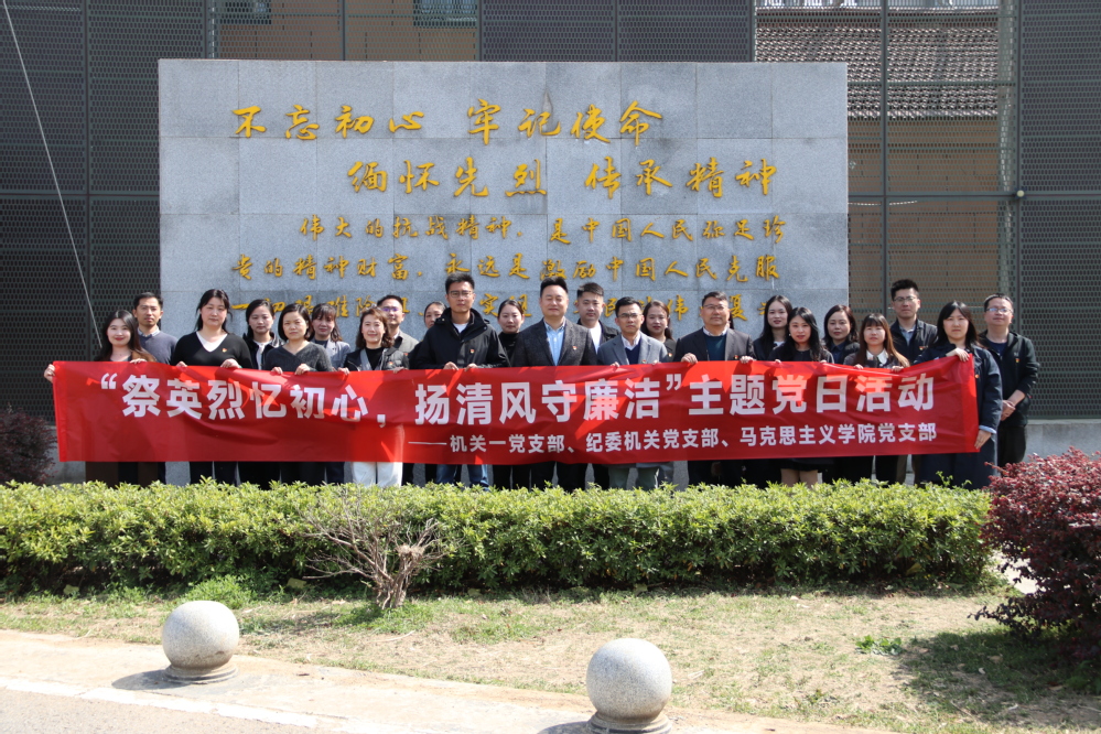 为深入贯彻中央八项规定精神学习教育,引导广大党员坚定理想信念,牢记初心使命,增强廉洁自律意识,4月3日在学校党委委员、副校长孔德丽的带领下,机关一党支部、纪委机关党支部、马克思主义学院党支部、人文社科系党支部的党员们齐聚一堂,共同走进江宁横山新四军革命纪念馆。