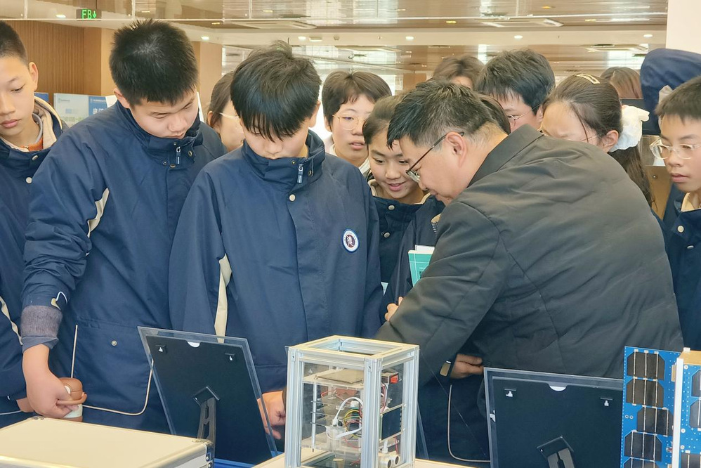 活动第一阶段,师生们走进学校航天科普馆,开启了一场沉浸式科技探索之旅。人文社科系党支部书记李杰致欢迎辞,然后在蓝岛创客空间候俊老师的引导下,大家近距离观摩航天器材模型、前沿科技成果展示,详细了解我国航天事业的发展历程与辉煌成就。从航天器构造原理到太空探索技术突破,从航天精神传承到科技创新使命,一个个生动的科普案例、一组组详实的数据资料,让师生们深切感受到科技强国的澎湃力量,进一步激发了探索未知、勇于创新的浓厚兴趣。参观过程中,同学们不时驻足询问,与党员老师深入交流,现场学习氛围热烈浓厚。