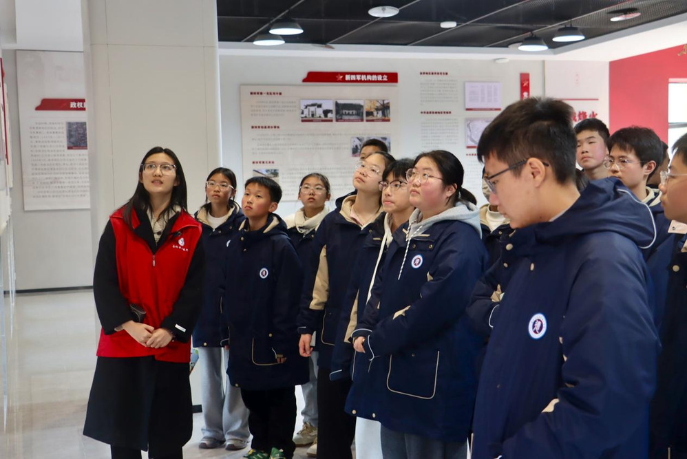 随后,活动转入红色研学环节,师生们步行前往东进苏南第一站——新四军历史研学基地。大家通过珍贵的历史图片、详实的文献资料、复原的历史场景,重温了新四军在苏南地区浴血奋战、砥砺前行的光辉历程,深刻感悟革命先辈们忠诚于党、为国为民、不畏艰险、奋勇拼搏的崇高精神。党员老师们结合历史事件,向同学们讲述革命故事、传承红色基因,引导青年学子铭记历史、珍惜当下,将爱国情、强国志、报国行融入日常学习和成长历程中。在庄重的研学氛围中,师生们接受了一次深刻的党性教育和思想洗礼。