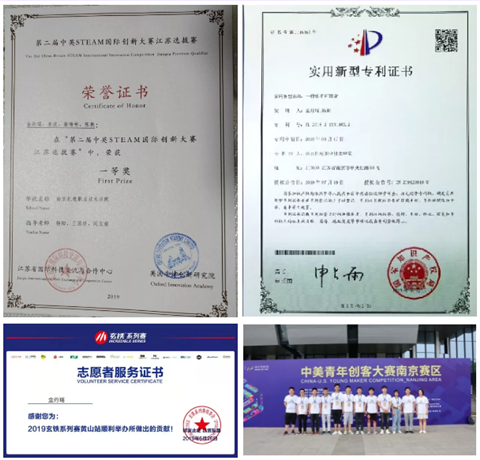 在校期间,成绩专业第一,综测第一。曾获国家奖学金、国家励志奖学金、学院第二届激光切割大赛二等奖,第十届“蓝桥杯”全国软件专业人才设计与创业大赛江苏省选拔赛三等奖、第二届中英STEAM创新交流大赛江苏省选拔赛一等奖。担任系部学生会副主席,班级文娱委员,曾多次被评为学院“优秀学生干部”、“三好学生”、“优秀团员”、“五四青年”。