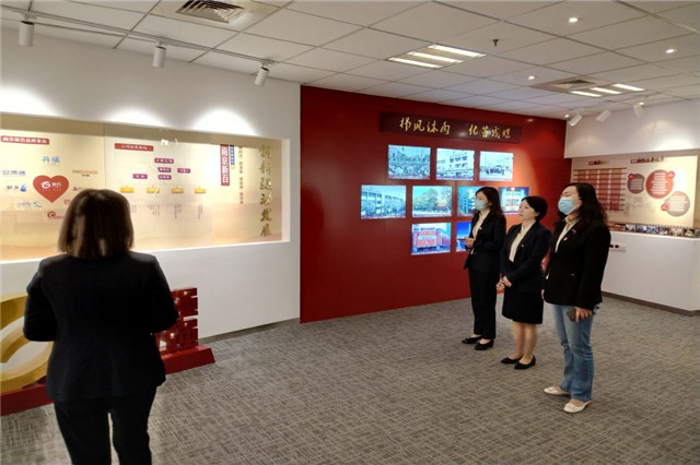 现场活动中,在王莉经理的陪同下,吴伟萍书记和南京机电职业技术学院13名实习生在讲解员的带领下,参观南京中心23楼的新街口CBD党群服务中心和新百荣誉陈列室,观看了新百党建宣传片,并就学生培养、企业发展、党建结对等事宜进行了座谈交流。