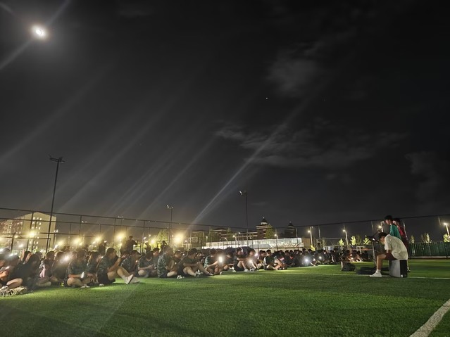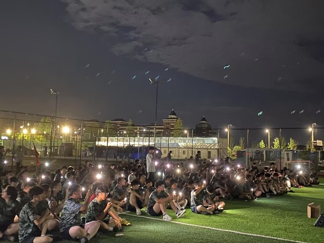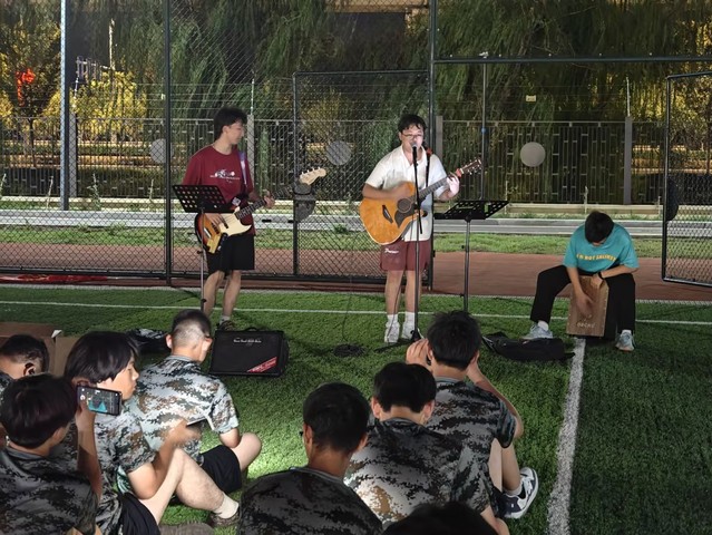 夜幕降临,操场上空无一人的寂静被一阵轻快的音乐声打破。不同于往常的严肃训练,今晚,这里成为了青春与梦想的舞台。新生们利用短暂的休息时间,精心筹备了一场别开生面的晚会,旨在通过文艺表演,增进同学间的友谊,同时也让身处异乡的学子们感受到家的温暖。