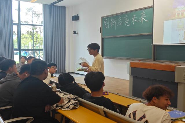 勒可凡神采飞扬地介绍了自己的创客经历,介绍了他在自己成长道路中是如何将创新思维和自身成长结合在一起的。他在现场与同学们交流互动,为同学们解答在创客创新上的疑惑,为电子工程系的同学们打开了通往创客之路的一扇门。
