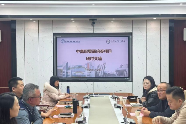 为深化南京机电职业技术学院与南京新港中等专业学校“3+3”中高职贯通培养合作,健全人才联合培养长效机制,2025年12月25日下午,南京机电职业技术学院党委副书记、副校长赵学洪,电子工程系主任姚小冬、书记叶绘、副主任丁向琴,智能产品开发与应用专业负责人张晨、无人机应用技术专业教师司翠平一行赴新港中专参与交流。南京新港中等专业学校党总支书记李杰、校长吉立秋、副校长施向军、副校长万兰平、信息服务系主任潘锦蓉及相关专业教师出席活动。