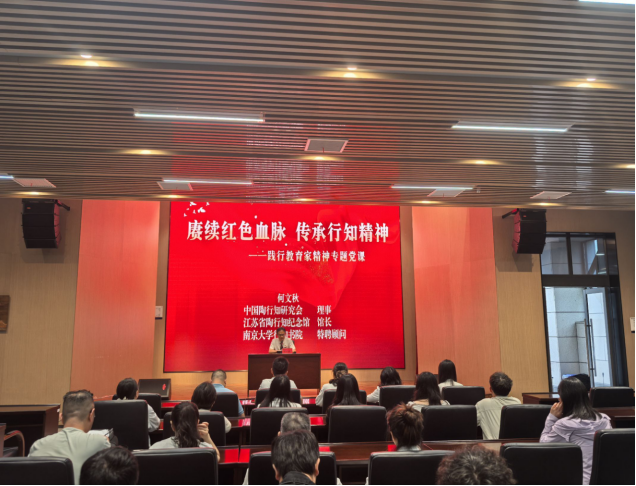 讲座中,何文秋围绕“红色血脉”与“行知精神”双核心,既解读了陶行知“爱满天下”“教学做合一”的教育理念,又结合革命时期教育工作者的红色故事,阐述二者间“以精神育新人,以红色铸底色”的内在联系。他还结合师生学习工作实际,提出“将红色基因融入实践、用行知精神指导成长”的具体建议,引发在场人员强烈共鸣。