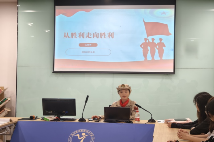 活动开场,臧琼介绍左星桥的成长历程。作为该系软件技术专业毕业生,左星桥在校时深耕专业知识,积极投身校园志愿服务与学生工作,用行动诠释“责任”;2025年年初,她主动报名参与2025年九三阅兵民兵方队选拔,经数月高强度训练,凭坚韧意志与过硬素质完成阅兵任务,成为方队中亮眼的青春风景。