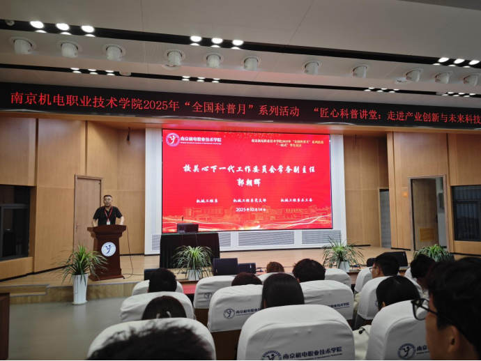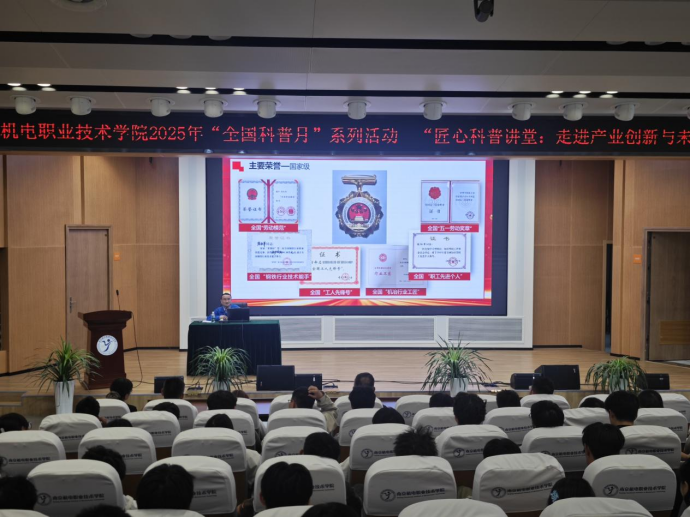 2025年10月14日下午,机械工程系关工委邀请全国劳动模范、南钢集团首席技师张红军走进校园,为机械工程系机械制造及自动化、智能制造装备技术大一新生带来一场主题为“匠心铸梦,百炼成钢”的主题报告会。此次活动是南京机电职业技术学院2025年“全国科普月”系列活动之匠心科普讲堂:走近产业创新与未来科技主题活动之一。本次活动在乐学楼102举行,校关心下一代工作委员会常务副主任郭朝辉、机械工程系主任、系关工委副主任毛奇、机械工程系党支部书记、系关工委主任胡枫、校企及科研合作处处长李木香、学工处处长张宝中出席此次活动。
