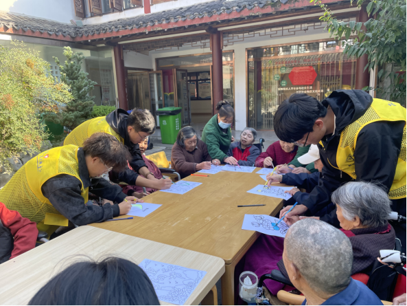 活动中,学生干部分组开展陪伴交流、创意涂画、手工制作等服务。在与老人的互动中,大家主动换位思考,通过多样化沟通方式搭建情感桥梁,不仅磨砺了耐心细致的沟通能力,更在倾听与陪伴中深刻理解了“敬老爱老”的传统美德内涵。手工制作环节中,同学们分工配合完成手工皂制作,进一步强化了团队协作意识与责任担当,将课堂所学的组织协调能力转化为实际服务成效。