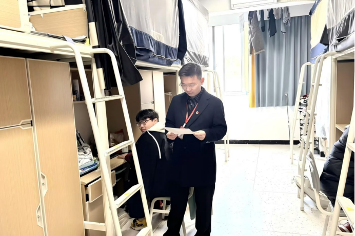 走访过程中,杨军主任及关工委成员与学生们围坐谈心、亲切交流,细致询问大家的寒假生活点滴、返校适应情况以及新学期的学习规划与生活诉求,认真倾听同学们在宿舍住宿、校园饮食、学业提升、人际交往等方面的困惑与意见建议,并结合自身经验逐一耐心解答,为学生们排忧解难。同时,一行人重点对宿舍用电安全、消防设施、卫生状况进行全面排查,仔细检查大功率电器、私拉乱接电线等安全隐患,反复提醒同学们增强安全防范意识,妥善保管贵重物品,警惕电信网络诈骗,养成规律作息与整洁卫生的良好习惯,快速调整身心状态,以饱满的精神面貌投入到新学期的学习和生活中。