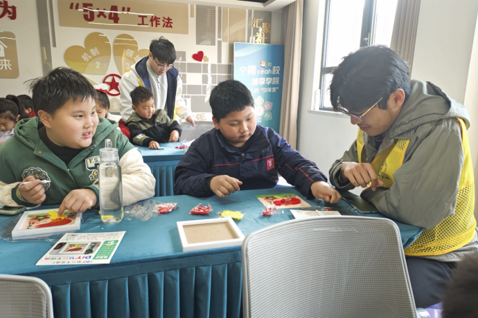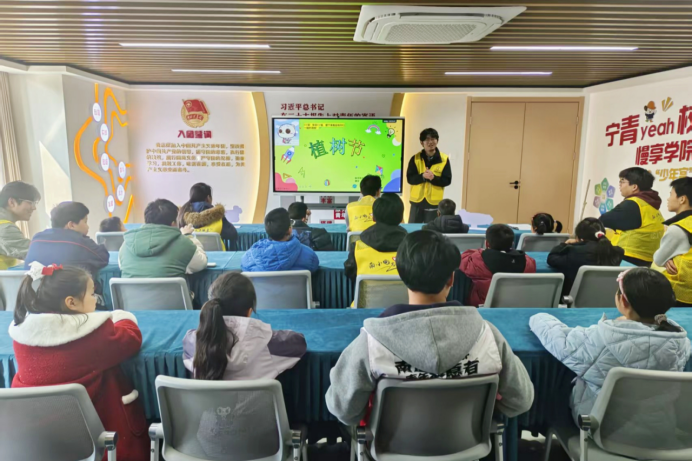 在未保站工作人员的协助下,志愿者走进大丰社区,为小朋友开展主题宣讲,以年代故事为切入点,用童趣化表达为小朋友讲述雷锋事迹。青年团员开展植树知识问答、互动游戏,与孩子们共同制作雷锋主题手工作品,让奉献种子播撒在孩童心中。