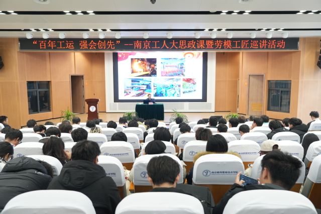 2025年11月27日,由南京市总工会主办、南京新工投资集团工会承办、南京机电职业技术学院工会协办的“百年工运 强会创先”南京工人大思政课暨劳模工匠巡讲活动在南京机电职业技术学院乐学楼102举行。南京新工投资集团工会副主席王春霞、南京机电职业技术学院工会主席姜振宇、机械工程系师生共同参与了本次活动。