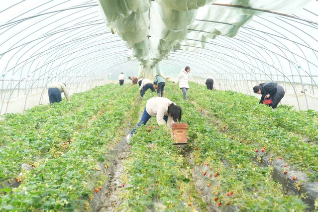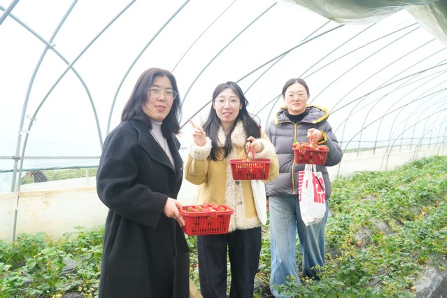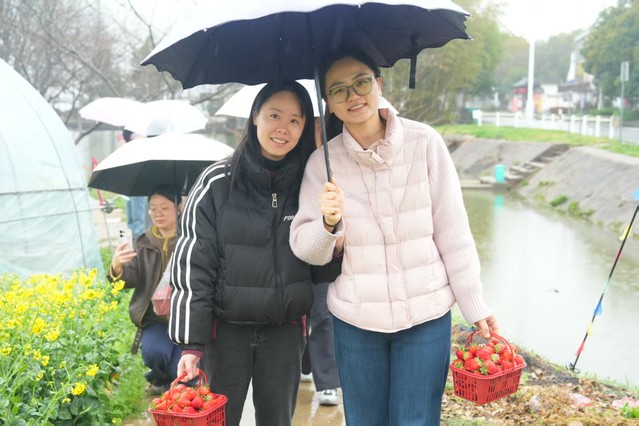 尽管踏青采莓当天阴雨蒙蒙,但丝毫未影响女职工们的热情。大家奔赴高淳草莓基地,开启一场春日甜蜜之旅。细雨浸润后的田野空气清新,草莓大棚内暖意融融,鲜红饱满的草莓挂满枝头,果香四溢。女职工们提着小篮,穿梭在藤蔓间,小心翼翼地采摘成熟的草莓,时而相互分享采摘技巧,时而举起果实合影留念,欢声笑语弥漫在大棚的每个角落。雨水为春日增添了别样韵味,大家在亲近自然的过程中放松身心,共享采摘的喜悦与春日的美好,收获了满满的幸福感。