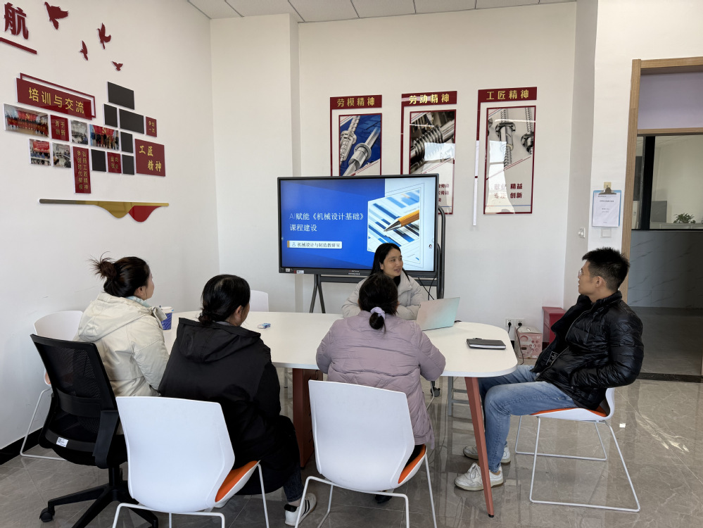 为主动适应数字时代发展趋势,深化教育教学改革,推动人工智能技术与课程建设深度融合,提升人才培养质量与适应性。2025年11月18日下午,机械设计与制造教研室全体老师在笃行楼李家喜劳模工作室开展全面推进AI赋能“一师一课”建设工作研讨。