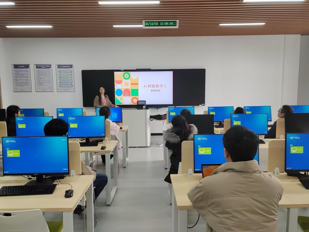 为积极应对人工智能技术对教育领域带来的深刻变革,推动教学理念与方法的创新升级,2025年12月30日下午,工业设计与精密制造教研室成功举办了一场以“AI赋能数字人制作与教学应用”为主题的专题教研活动。本次活动旨在探索人工智能前沿技术与教育教学的深度融合,聚焦AI数字人生成工具的操作实践,提升教师运用数字技术革新教学模式的能力。活动由教研室韦星屿老师主讲,全体专任教师积极参与。