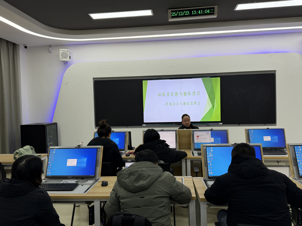 2025年12月23日,机械设计与制造教研室全体老师在笃行楼211室开展“AI精准出题与题库建设研讨”,由唐锋老师主持。