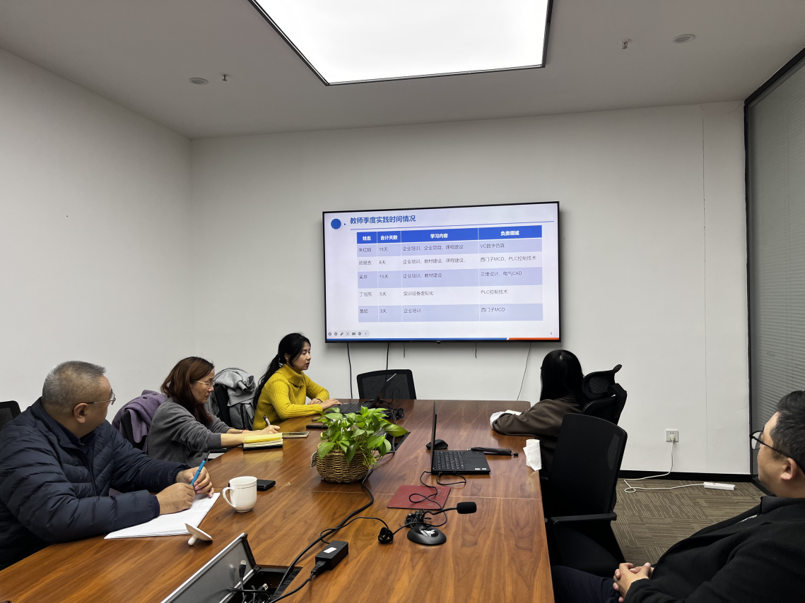 会上,朱红娟围绕项目进展情况、工作阶段成果、下阶段工作计划三个方面对第三季度工作进行汇报。第三季度进站教师完成横向课题1项,参与企业项目2项,完成52名学生考证,4名教师考取了Solidworks高级证书等成果。