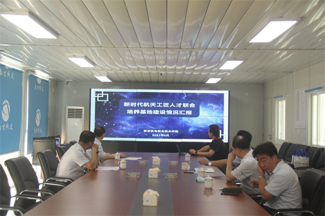 6月24日,新时代航天工匠人才联合培养基地建设情况汇报会在我校项目部108会议室举行。南京市教育局副局长潘东标,南京市职业技术教育学会会长、市职社处处长黄子亮,中国航天科技国际交流中心副主任周岫彬,中国航天科技国际交流中心产教融合处处长朱涛,学校党委书记、院长周庆礼,蓝岛创客空间主任王国珍参与了本次汇报会。